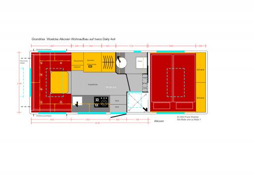 Innenmaße | L ~ 4100 (+ Alkoven) x B ~ 2100 x H ~ 2450 mm |