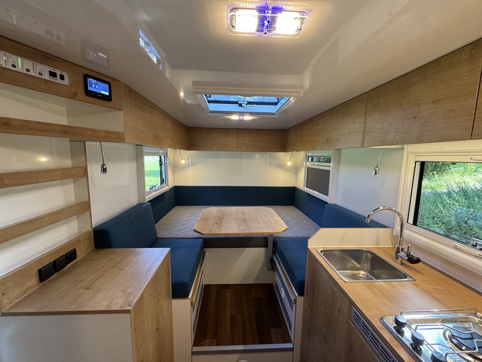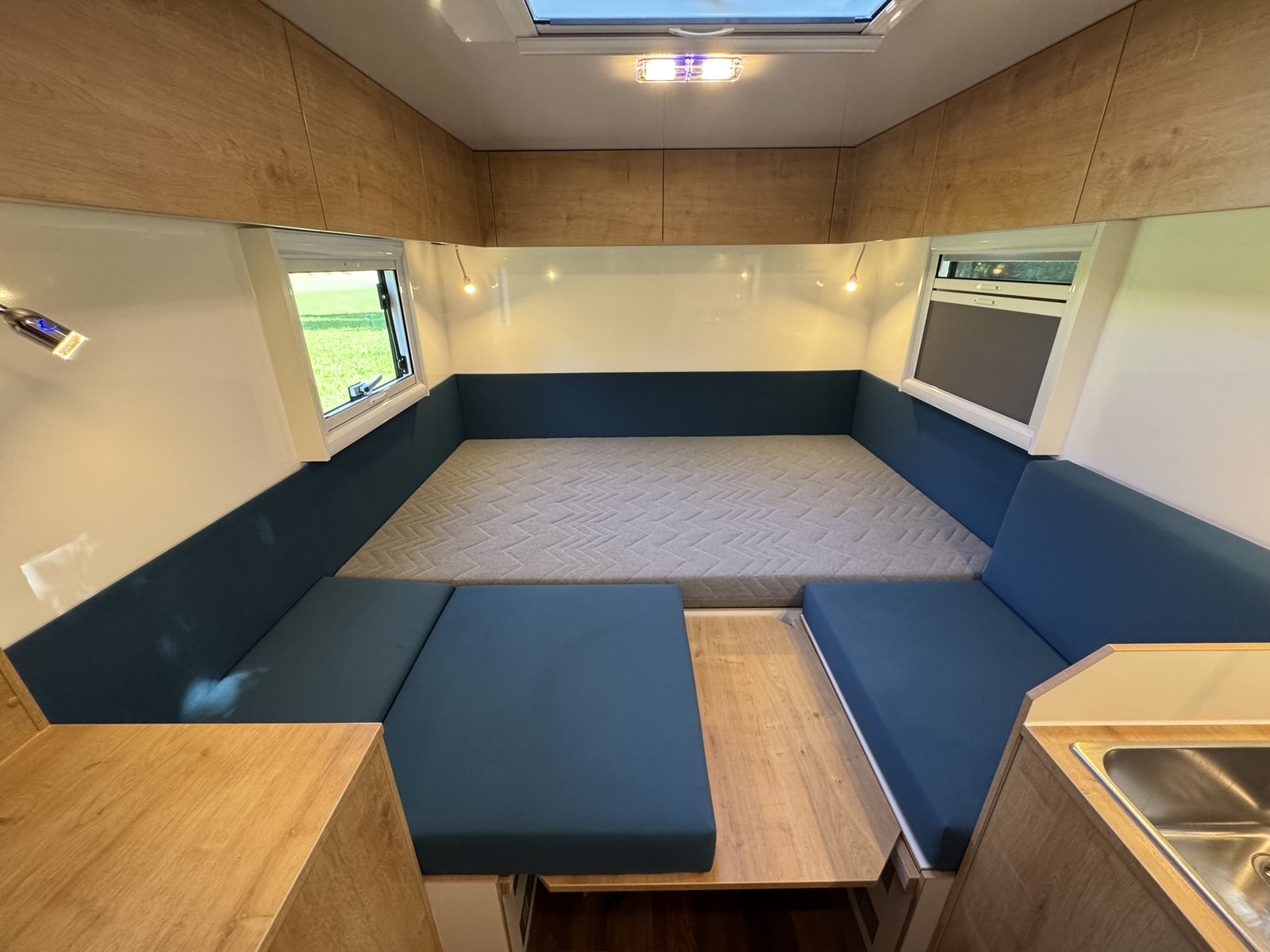Betten | 1x ~1.980x1.300mm Heckbett + Umbau zum Längsbett ~1.990x1.950mm |